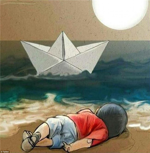在天堂里,你會被善良的人照顧、擁抱和親吻,他們愿意為你到達自由的彼岸付出一切。安息吧Aylan Kurdi。愿上帝原諒我們的罪行,讓你這天使殞命人間。