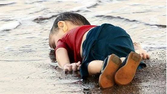 9月2日,3歲男童遺體被沖上土耳其海岸的照片讓整個歐洲心碎。照片中的男孩身穿紅色T恤和短褲,面部朝下趴在沙灘上。