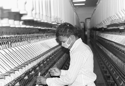 天利紡紗(毛里求斯)有限公司紡紗廠的外籍員工在工作。 本報記者 倪 濤攝