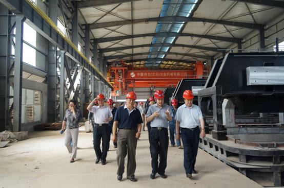 圖二:毛占彪主任一行實地來到5萬噸電解鋁產能置換技術升級改造及5萬噸特種鋁合金棒生產車間考察