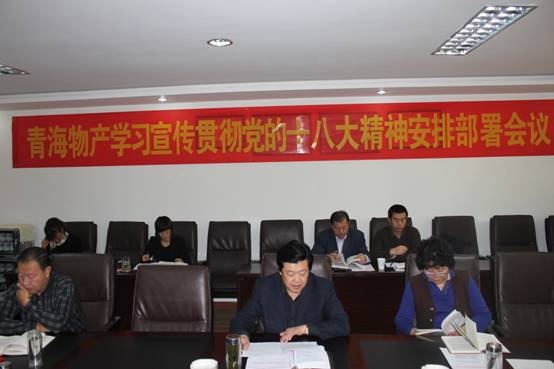 2012年11月27日,省物產集團黨委召開學習宣傳貫徹黨的十八大精神安排部署會議,集團黨委成員、各部負責人,所屬各黨組織書記、黨群部門負責人參加會議。